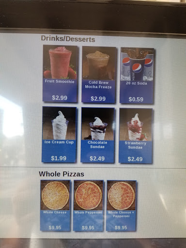 Here at the Food Court, they have great quick bites, from hot dogs and soda, to hamburgers, to pizza, and even quick deserts that are all very tasty.