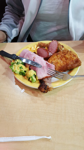 Im sad to report that not much has changed since the last reviewer. I cant here with my mother and sister yesterday to enjoy roast beef dinner and bbq. The place wan bit crowded but a shortage of food was at hand. The bbq ribs are pork not beef and gone every five minutes. Roast beef was dry, and everything else was as expected. I give the service here a 2/5. Did quality 2.5/5, cleanliness 2/5. The dining area was a bit messy. Floors really needed to be swept at all times. Desserts selection was poor at best, the ice cream machines are out of order out give only vanilla. I had to wait almost 10 minutes in line for two pieces of ribs. The food gave me an upset stomach the next morning. Cleanliness is very poor here. For being in a nicer area of LA is sure is rundown.