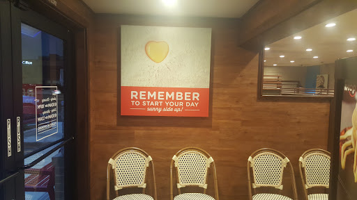 Its small but so what.. The level of customer service there is GREAT!!!!! The manager there is hard working as the staff its self.. Its one of my favorite breakfast location in my local area.