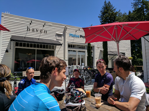 Equator is great for cyclists. The coffee is excellent for starters. Its located right on the main road through Larkspur. Theres a bike rack and a nice patio with amble outdoor seating and two clean bathrooms on premise. Also good for non-cyclists as well.