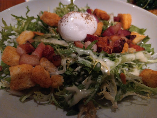Love the atmosphere - plenty of outside tables - though admittedly, the view is nothing to look at - few pedestrians & a busy traffic intersection at that - but somehow it works. Inside there are several seating possibilities, ranging from cozy tables by the fire, window seats, lively raucous tables by the fully stocked bar, and quieter in back booths. Theres a private room for small parties - that seats probably 20 or so. The menu has changed from a few years back and no longer has the fabulous bouillabaisse, loaded with fresh shellfish in a rich & spicy red sauce - served with fresh cloves of garlic to rub into melba toast like croutons and to further flavor the broth. But alas, no more. What they do offer is lots of tapas like little plates - so one can excite the palate with the variety of offerings. . . steak tartare, pâté, lamb & pork sausages, salade nicoise with fresh rare seared ahi tuna . . .