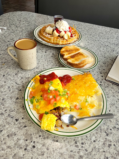 Its a cute country breakfast spot that serves diner food. They have a good eggs benedict for eight bucks, but I really liked their basic waffle breakfast with eggs and bacon. Our server was friendly and everything went OK here. Ill be swinging by here again for sure.