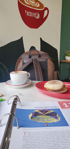 My new favorite cappuccino spot. Very fair prices especially considering the quality. The aesthetics of the inside are great as well. The visible seismic structure is neat and visually appealing. A great study spot, they dont jam the music super loud like some places. There also tends to be open seating and not as crowded as other nearby coffee spots.