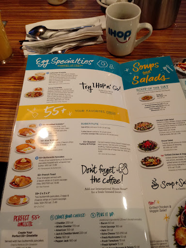 Pretty typical IHOP. Food and service are OK but both depend on when you go in. This is not a 24/7 IHOP.