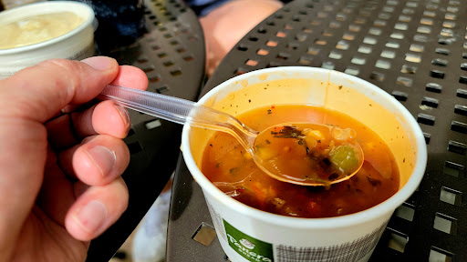 Pretty good food. Soups and sandwiches are solid. Everything is a little overpriced. Also,one of the few places that accepts Android Pay.