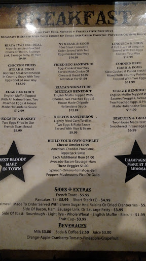 I have been going every week end for several years now to this part of Alameda County for breakfast with my boys. I have tried most of the places in the Tri Valley Area by now. With this experience I can say that there is no place with better service, better atmosphere, not so crowded, and pretty decent food than the Riata in Livermore. Love this place. They even have an al fresco terrace on the little alley between First and Second Streets. Try it!