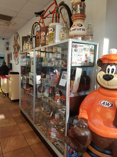 A&W drive-ins used to be one of the mainstays of the American road trip, out West. Before every automobile came equipped with air-conditioning, and you were stuck in the back seat of a late 50s model Detroit vehicle, A&W was a godsend. You would see the billboard announcing only 5 more miles to A&W and your suffering in the Summer heat was partially relieved. After the stop, you were in heaven, savoring an ice cold root beer float, or a strawberry freeze, milkshake or malt. This is the A&W with all those famous drinks and a display of historic A&W memorabilia. This place should be on everyones Bucket List, if you never experienced A&W on the open road. As far as the food goes, stick to the basics; burger, fries, etc.