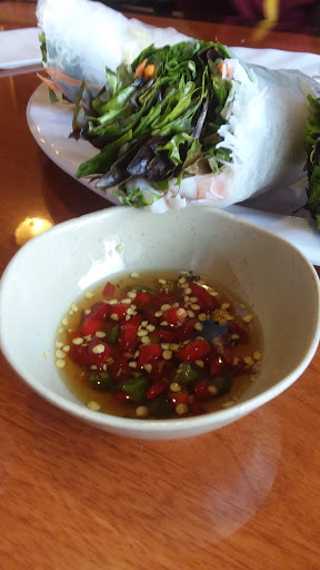 The spring rolls were huge and fresh. A meal in themselves. The garlic noodles were tasty but the chicken was a tad over cooked and there were no veggies. That was okay because the spring rolls made up for it.