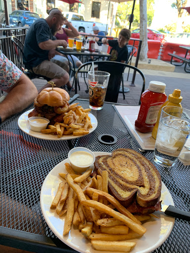 3.5 Stars! Memorial weekend (Sunday) and everything else was shut (after 3pm) so we didnt have too many options left. This place was open so it was convenient for us to have lunch here before hitting up Davids vineyard (10min drive) which was close by. Good ambience with a long bar and TV inside (perfect for watching games) and long community tables outside. Service is great, our waitress was really nice and friendly and came to check on us few times. Food wise is ok - typical American food with good options of sandwiches, salads, burgers, wraps etc. Good beer selections although they were out of the Altmond IPA we wanted but she was nice enough to suggest the replacement for it which was good! Between the 4 of us we had: - chilli dog with garlic fries. Good but couldnt finish - blue cheese burger. Good (didnt like the bun much) flavours from the blue cheese but too heavy so should be shared - tri tip sandwich - good but not up to the trip tip standard - fish and chips. Perhaps I wasnt lucky but it was terrible. Overly deep fried and not fresh fish so didnt finish it :( Cant say I would return...