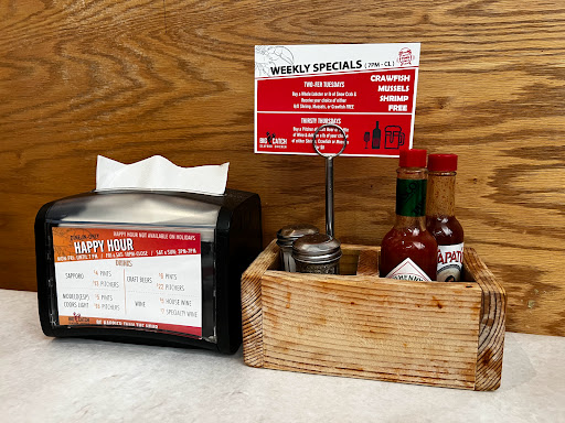 Big Catch strikes a good balance between fast food and pricier sit-down places. They have a variety of burgers & sandwiches, and they also serve lobster, various fish plates, and pasta. The appetizer menu features several choices, and they offer a wide range of alcoholic beverages. (But no coffee!) Prices are low, and they are located close to the hotels. Service was friendly & fairly quick. With bench seating & 4 TV screens, this is not a romantic, cozy place, but it is a good place for a simple dinner while traveling. Portions were filling, and the flavor was good. With enough Cajun spice to be distinct, but not distractingly hot.