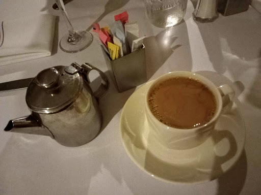 Very fine ambiance since Chelseas is located aboard the grand old Queen Mary, long retired in Long Beach harbour. Service is great and staff are very accommodating. The shrimp cocktail shrimp are massive! I had the Chicken Carbonara which is a delightful mix of grilled chicken and ravioli in a white wine sauce with peas, tomatoes and bacon bits. A nice experience all around.