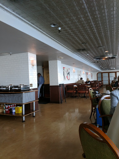 Queen marry is awesome. Eating here takes you back to when the ship was sailing. Everything seems and feels like it was exactly how it was back in the day. Very clean. Great people. Service is doing the best they can. They are really trying to not have people wait, its obvious. Our waitress was awesome. She ran a bunch of tables, took orders, and etched the food. The busboy helps out giving out water and soft drinks. Very cool place. Very romantic. Have patience. Enjoy the scenery. If youre in a rush, go to McDonalds. Food was perfect. Prices: As expected. Los Angeles burgers are $12-19 Entres are always $22-32 Chelsea. Burger is around $15. Entres around $25.