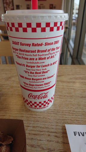 I give Five Guys Five stars, for its great customer service and it has a really nice environment. The food was good enough, taming my taste buds.