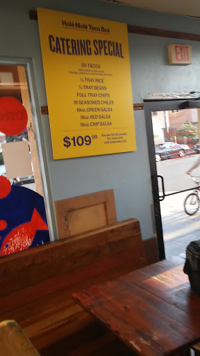 I love Hole Moles potato tacos. They are so good and cheaply priced. Havent had much else on the menu because i dont eat meat, but Id reend checking them out. Parking is OK, there is a lot in back you can usually find a space. The crowd that hangs around is a bit seedy, but I just walk straight in and order.
