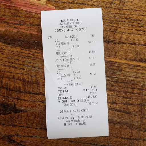 A Whole Mole? I think living in Long Beach for awhile is a prerequisite to understanding these clever establishment monikers. But you neednt live here long to find Hole Mole (mine is on 4th St) and be very happy for the experience. I guess its some type of ethnic bias I have, but when I see blue collar Hispanics at every table, I feel things are gonna be okay. My tacos were more than "okay". They were like corn sarapes swaddling little morsels of carnitas in a blanket of salsa - just delightful to the last bite- half of which ended up on my tie. Further down 4th Street, the air gets a bit high-falutin but here on 4th and Nebraska, its like the cocina was opened just for you. The drinks are the usual soda fountain standards and nothing to really compliment the food. But you didnt come for a Mountain Dew, did you?
