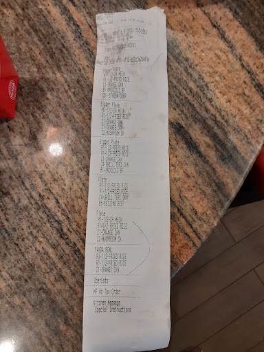Every time I come here I always get great service the food is fantastic especially the orange chicken my wife and daughter they just adored Panda Express