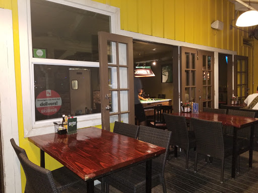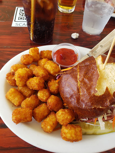 Great atmosphere, nice open air pub. Spinach Artichoke dip was good, with plenty of chips. My wife ordered the fish and chips, and the fish was delicious and fluffy, "seasoned" fries were quite bland. I ordered the reuben, which had too much thousand island and not enough sauerkraut. Garlic fries were literally just steak fries with a pile of minced garlic thrown on top. So that was not very appetizing. Service was good, considering how busy it was. Staff was quite friendly. The guy running food and business tables was legitimately on top of everything. Impressive stuff. Bottom Line: Friendly staff, great atmosphere. Good drink selection. But the reuben and fries seemed somewhat bland (with the exception of the battered fish, which was fantastic). Would recommend, but Id probably order something different next time.