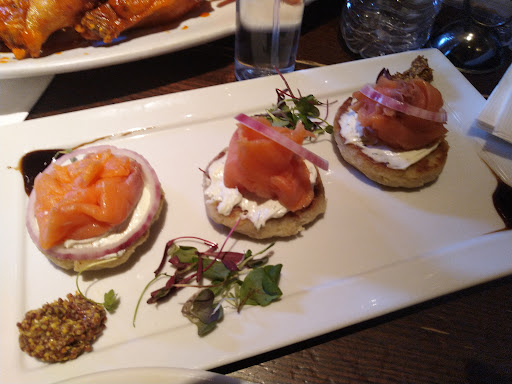 Probably the best oysters on the shell weve ever eaten! We had to ask for horseradish and were very glad we did, it was very fresh and HOT!! We also shared a smoked salmon sandwich, unusual and delicious! Fun place, we left just as it was starting to hop, dang it!!