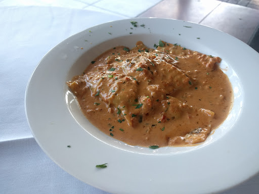 Very nice restaurant with a lovely outdoor seating overlooking a very quiet idyllic view and attentive service. I had the spinach ravioli and it was cooked perfectly al dente. Rock cod filet was also beautiful.