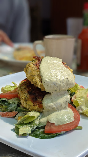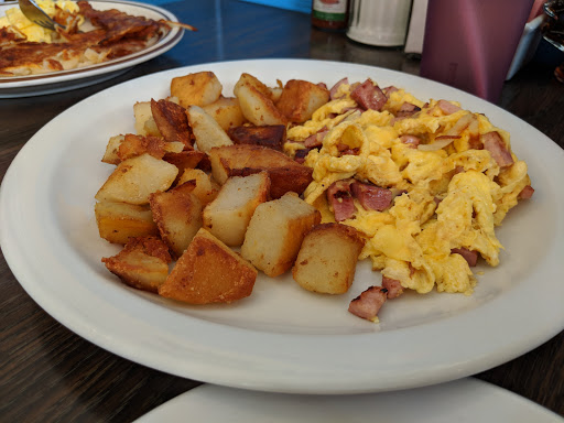 A family run gem of a breakfast place. Extremely friendly service and the usual american breakfast classics - pancakes, waffles, scrambles, omlets, etc. Enjoy the interior patio during the warmer time of the year. Dont forget your cash, they dont accept plastic.