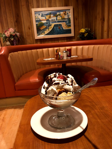 What a fantastic time capsule of an LA diner. Great daily specials and friendly staff. I like that they have the glass case with the rotating pies and cakes. But, what brings me back on occasion is there amazing vegetable soup! Critíca en Español: Que capsula de tiempo tan fantastica de lo que es un comerdor Angelino. Todos los dias tienen especialidades y los meseros son muy agradables. Me gusta que tienen la vitrina que da vueltas y dentro estan los pasteles y tartas. Pero lo que me hace regresar ocacionalmente es la sopa de verduras!