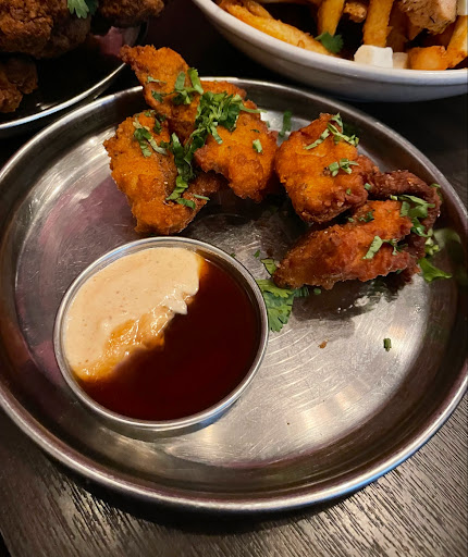 One of my favorite spots to go for dinner before I catch my train home. I have fallen in love with the menu since I tried their butter chicken at the LA street food fest in 2013. Come with your friends and grab one of each item for maximum sensory overload. My favorites are: Chicken Tikka Poutine - juicy chicken, gravy, gooey cheese curds, and fries. A heavy item that packs flavor. The Chicken Tikka takes this Canadian dish to new heights; you may wonder why Canada doesnt adopt this version as its national dish. Butter Chicken Samosa - delicious butter chicken is wrapped up in a crispy shell. Filling is light and creamy with more juicy chicken. Chickpeas and Chips - refreshing and slightly sweet. The crispy chips are generously topped with chickpeas. If you ordered a really spicy item, this is a nice cool dish to have Interior is nicely decorated, seating can get cozy. On weekends its best to make a reservation if you want a table or have a group. The beer selection is nice curated, its a mixture of imports and craft beers. Service is quick; very polite, approachable, and knowledgeable staff. tl;dr a must try if you like a new take on Indian dishes and flavors