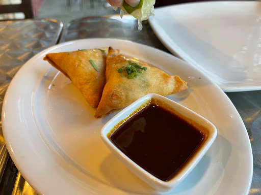 PROBABLY the best samosas Ive had. Rhey use a flaky crust like a wonton. Theyre dipping sauce os so good. Nice atmosphere and wine selection.