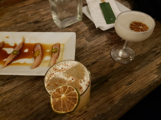 Trendy hipster place! Good service! Cocktails are really delicious! whisky mango foxtrot, and summer bash were two of my favourite sweet cocktails. I also tried terra nova which has Jalapeno flavor so it has good spicy kick! Again, delicious spicy drink! Food is ok! Presentation is beautiful, but flavor are not necessarily mind blowing- but good! I had the Far Bar Stacks, which is essentially open spicy tuna roll with salmon and cucumber! You can tell that fish is fresh and had good flavor. I really this place to anyone with a group of American and/or Asian fusion food love! Street parking! Near the end of our dinner, two house merchandise promoters (two girls) brought us "cherry whiskey" sample shots, and one of them took one shot with us. It was a little on the sweet side and pretty smooth! If they have it on the menu- recommended!