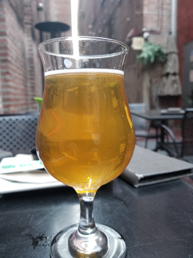 This place is pretty cool. I think I agree with most of the other reviews. They have good food and (seriously!) SO MANY BEERS ON TAP. Its kinda crazy. The place is really small, so you probably wouldnt expect much of their beer selection, but its pretty great. When I was there on Friday, they had some neat beers from a local brewery. I think this is a regular thing and they switch up the brewery. Pretty cool! There are bouncers outside, but the place is very unpretentious. The bouncers just check ID; no dress code or anything crazy like that. AND they stop people from smoking in the outside alley part of the bar. Its awesome. F you, smokers!