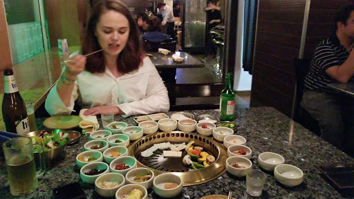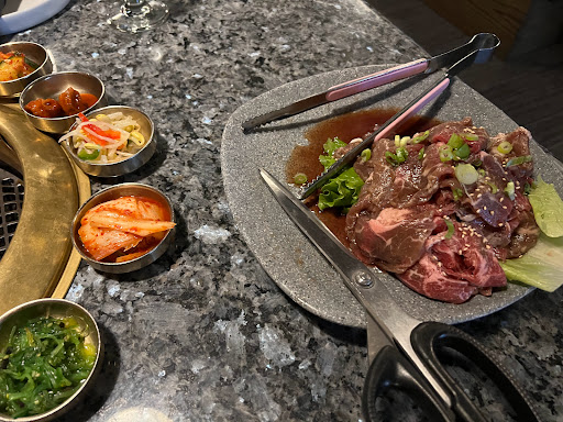 Are you kidding me? !? This place is ridiculously delicious. Yes the food is a la cart and Yes its pricey but here is why: the meat (all the meat) is so freaking tender like it was beat in the womb, beat all its life and then just to guarantee its tenderness they gave it an extra beating right before it arrives to your table. They have 20+ sides that are all delicious. I know everyone likes the rice paper (which they serve) but I was extra stoked that they had the daikon radishes. I prefer to have my meat with the radish in lew of the filing rice. The staff is amazingly friendly and will have an actual genuine convo with you. They were also very attentive, making sure we had refills, sides, our meat cooked. After talking with one server, he offered us complimentary soju apple shots to try. Amazeballs!!! Dinner was followed with a chilled sweet cinnamon tea and lollipops were in our check book. This is a must try Korean Bbw if youre in L.A.!!!