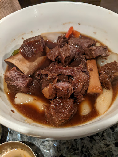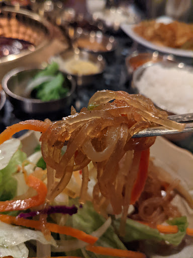 My friend Crystal W. has recommended this place to me several times so I finally went there for lunch with my friend NH. We did valet parking for $3 in their parking structure, which is shared by the businesses in that block, since it was easier than driving around trying to find street parking (we were short on time). We shared Course A, which comes with House Salad, Soon Tofu, Rice (Brown or White), Japchae, Prime Galbi, and Choice of 1 item: Bulgogi, Bulgogi Chicken, or Cha Dol. We chose White Rice and Cha Dol. The chadol was a bit disappointing since it was just okay. The soondubu was even more disappointing because not only was it meh overall but it also tasted a little weird. But what made this lunch worth it was the galbi! That was really good--next time I would get just that for the meal. The rest was a waste of stomach space. Although I did appreciate all the various banchan they provided. Service was really good and the best part about this place is that you do NOT smell of smoke afterwards! I hate that part of KBBQ which is why Crystal kept on recommending this place to me. It is more expensive and a bit out of the way, but I would not mind coming back for their delicious galbi.