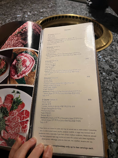 This is NOT All You Can Eat KBBQ. This is FAR better, more expensive, and a notch bit more fancy. With that disclaimer, do not worry about the non-AYCE part, you will be satisfied from your meal. -=- A+ Combo -=- You have the option of ordering a combo per person price, or individual dishes. I know my Korean food, but its just so much easier to trust that decision to the restaurant. We did not go wrong with ordering the Combo A+ which was a step up from the basic Combo A. Some of the combos included Soju, but this one didnt. No matter, wed buy a pitcher of Hite anyway to wisk away this week. You get the basic meat favorites like beef brisket (Chadol) and Bulgogi and really thats enough of a taste to get your feet wet here. -=-Banchan-=- The insane amounts of banchan that they give here are well documented in the pictures. Its true, you get a ton, and you can just keep requesting your favorites. My faves ended up being the Fish meatballs, fish cake slices, and potato salad. I think I ended up requesting at least 4 more fish meatball servings. The sauce that they were in were so savory and flavorful. -=-Service-=- What immediately differentiates Genwa from other KBBQ is the level of customer service. It really is on a whole new level that goes above and beyond that of the fanciest steak houses. Shane would be our main server, but that did not stop the other servers from coming and helping us cook our meat. With the attention that you receive here, the servers will not let you burn your meat and will basically take over the grill if you end up in a deep conversation (points to self). While this is a self-cook place, there was a period of time where Shane would stand over our grill and start cooking, cutting, and serving our plates. It really was full service to the max which made this one of my best experiences at a KBBQ restaurant.