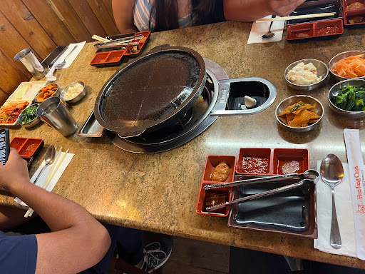 KIMCHI FRIED RICE! GET IT! The first time I visited Hae Jang Chon was with my bf on a weekend and the line was over an hour long, so we went to Oo-Kook instead. Last week a group of 7 of us arrived for dinner on a Thursday and there was no line! I ended up reserving a table for us anyway, but we got pretty lucky because the place filled up quickly after 8pm. Once seated we all opted for the $18.99 AYCE Korean BBQ which came with 19 different meat items and yummy banchan dishes. The meat we ordered (tri-tip, short rib, pork belly, chicken, brisket, bulgogi) were all flavorful and tender. I loved how our server came by consistency to cook the meat for us. The round lopsided grill was also something interesting that I saw for the first time. It allowed for all the grease and oil to leak through a hole from the grill so youre not eating all the meat soaked in the grease. Although, the seating was a bit cramped for the 7 of us at the table I really have nothing negative to say about this place. If I ever find myself in Ktown and craving Korean BBQ Ill definitely be coming back! Also, I have to rave about the delicious Kimchi fried rice! It was the cherry on top of the sundae for me! We had to request for our server to come cook the fried rice for us after we were done grilling our meat dishes but it was well worth the wait! The fried rice was spicy and I loved the slight sourness from the kimchi that was mixed in. I definitely recommend saving room for this after your meal! Tip* Parking is kind of a b*tch because the parking lot is valet only and gets packed quick. Theres street parking nearby but that gets full too.