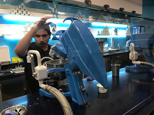 The ice cream is good, not great. But the unique vibe blends art and science into a fun place thats definitely worth at least one trip. The ingredients are mixed together in a bowl while liquid nitrogen instantly super-freezes it into ice cream while spewing a cool fog all around. The selection is somewhat limited. I recommend going with Blue Velvet.