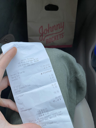 The Johnny Rockets on 3rd and La C. was AMAZING. The food tasted GREAT. The service was WONDERFUL. Such a great place, definitely going back again.