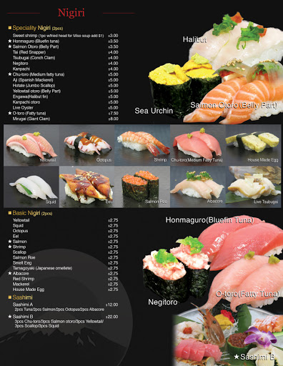 A long menu with reasonable prices for "basic sushi."