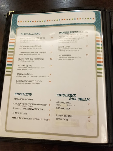 Clean, nice place, great service. Dishes range from $10 -18. Kids pay $9 for 2hrs of play time. My daughter (3 yo) didnt want to leave. The great thing about this place is the play area is towards the rear, so the kids cannot walk out or be taken. Felt really at ease.