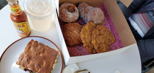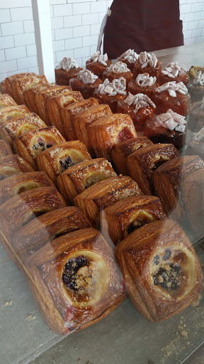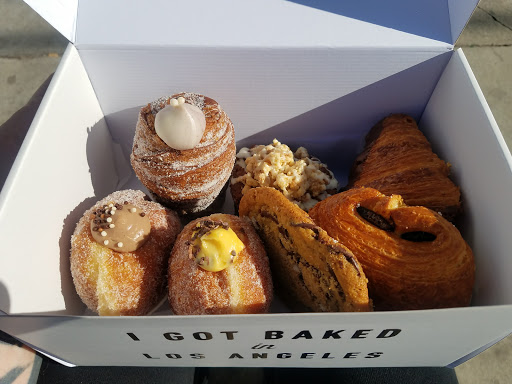 Very hip bakery in northern part of fast gentrifying Figueroa. Concrete and white tile decor and club like music might not work for everyone but the bake goods are definitely good. Smoke salmon crossaint with a hint of wasabi is my favorite. I dont really understand cruffin. It is basically a cream filled vertical crossaint.