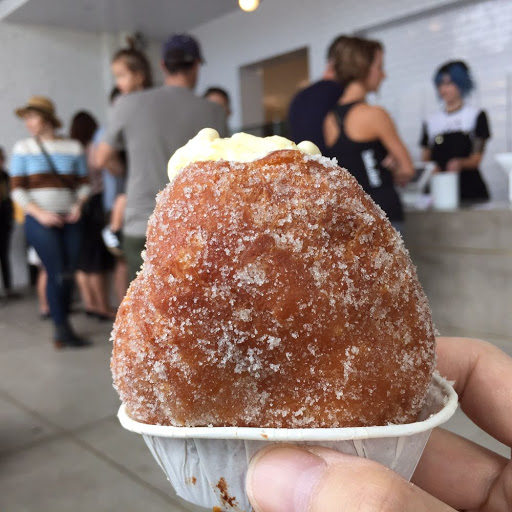 Wasnt really expecting much (A lot of highly rated donut places are hyped up bc of hipster reasons, etc), but I loved the chocolate croissant and the white chocolate donut (The cream inside is delicious and light and doesnt taste like white chocolate at all). The fam also liked the cookies and the cruffin (Theres chocolate cream inside). The chocolate croissant was filled with a nutella like chocolate, but it was lighter/not as thick as nutella. The pastry was light/airy pastry dough. The white choco croissant was like a fluffy malasadas (island donut) with choux puff pastry cream inside. Def will come back.