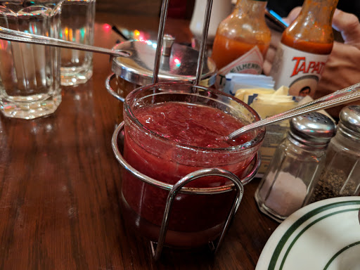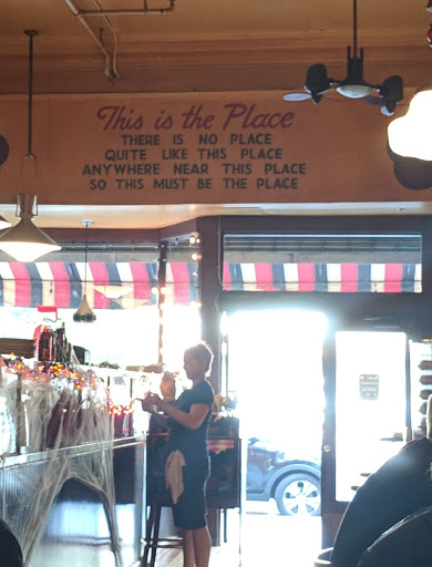 Yet another one of those places that I want to love but it is just not quite right. We went for breakfast one morning as Kay was craving eggs. She had eggs, bacon, and beans. I had the Vegan Ranchero; tofu shaped like flowers, beans, and tortillas. I also ordered orange juice and Kay had a coffee. They brought out two coffees (I cannot have caffeine) so Kay immediately grabbed them both and started loading them up with sugar (which she had to ask for). She also got a refill on her coffees later. She didnt like the bacon but thats because it wasnt what she expected (what we call bacon in the UK is more like ham in the US and she didnt realise this) but loved the eggs. She also left most of the beans because, again, not what she expected. Mine had a nice kick to it. I liked the beans and tortillas. Did not really like the texture of the tofu. It was a bit too much like egg for my vegan brain to cope with first thing in the morning. There was a nice piece of avocado but no soy cheese or salsa as the menu had stated. Whatever. Service was OK. One of the guys was very cute which always helps. It was also quiet with only two other customers although someone kept standing in the doorway and shouting in. Evidently the staff knew him but it was totally annoying. I absolutely loved the decor and music. This is how diners should be. When we both arrived and left, there were lots of homeless people milling around but they didnt bother us at all. I guess Kays mini skirt distracted them... I went straight back to my hotel and threw up. I guess my vegan stomach was also a little confused by the tofu... I was so ill that I was not brave enough to go back. Maybe I will in the future...