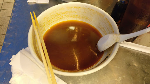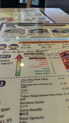 Only two legit reasons you should ever step inside this "ramen" joint: 1. because you like spicy food. 2. because you are too hungry for the wait at Daikokuya and you absolutely crave ramen this instant. Unfortunately, I was guilty of the latter this weekend and found myself at the counter of Orochon waiting for my bowl of ramen. Im a traditionalist, and want my ramen the way countless of generations in Japan have made it and enjoyed, so I went with the miso non-spicy (#7) and added egg and chashu. Lets start with the positives because its a much shorter list. The egg was cooked perfectly, and the chashu was very juicy. The serving size was large enough to make me wonder why anyone would option for extra noodles. Now for the list of negatives longer than a strand of ramen... There is a discernible difference between flavorful and salty broth, and Orochons broth was undoubtedly just salty. The ramen itself was a bit hard for my taste, but gradually got better as it sat in the broth. I also noticed that the previously mentioned large serving size was just an illusion, since by the middle of my chow down, I was literally just eating bean sprouts as there was no more ramen. The worst part of it was knowing that I could have had a significantly superior bowl of ramen across the street for actually LESS MONEY, since my order with the additions (that Daikokuya includes without extra charge) comes to $10 (ramen $7.45 + egg $0.99 + chashu $1.50). Expensive for salty bean sprout noodle soup!