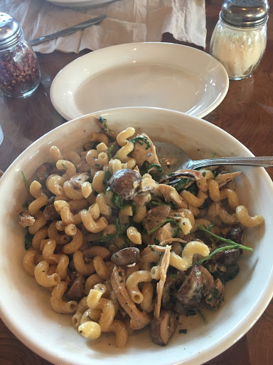 Modern, boisterous ambiance. A little loud for me, but its energizing to be in a bustling atmosphere like that. We got the wild mushroom pizza - marvelous! Wood-fire style crust, fresh and tasty ingredients, served sizzling. Asked for a slice of cheese pizza - they dont serve by the slice, but the kids size cheese pizza was the perfect size for my son. Fresh veggie salad with roasted tiny potatoes and asparagus was also wonderful.