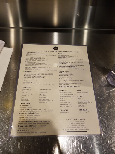Silverlake Ramen is a must-go if you are in the Silver Lake area. Its open pretty late on weekends for your latenight fix, and the service is efficient and admirable. Parking, especially on weekend nights, can be a little bit of an issue, and I many times have had to park pretty far away on Sunset, but its definitely worth the walk (and potentially the wait). They dont take reservations, so Id suggest going in a pretty small group if you want to get served as soon as possible. You put your name down, wait approximately 20 mins (on a busy day), and then they call you up. Make sure youre there for when your name is called! The space is pretty small, loud, and busy, but the service is very efficient, and the waitstaff is very friendly. They have a small seating area outside, but Id definitely try to snag one of the tables inside to enjoy your meal. They also have takeout and are on Postmates! Ive only gotten their classic ramen and the poke, but a bunch of my friends have RAVED about their spicy ramen. There are huge portions for the price, and Ive always been very satisfied with the quality. The only complaint I have is the small space, the long wait, and at times the cleanliness, but you have to expect that from somewhere as busy and successful as Silverlake Ramen.