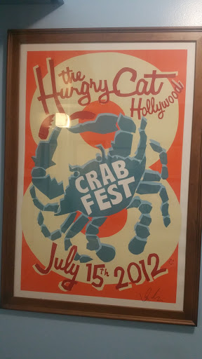The Hungry Cat is a pleasant little surprise tucked away in a cul-de-sac behind Borders Bookstore. The prices are moderately high, but the food and service are worth it. My son and I ate there on Tuesday afternoon, too late for lunch, too early for dinner for most restaurants, but fortunately for us, the Hungry Cat was serving from its limited menu. The limited menu still offered a nice array of appetizers, entrees, and desserts; in addition, several oyster and wine specials were available. We had the shrimp (peeled our own to save a few bucks :-) and a half dozen of the Wiley Point oysters as appetizers. The shrimp were large and flavorful, having been boiled and/or sauteed with some garlic, parsley, and spices. The oysters were also fresh and delicious. For our entrees, we had the Pug Burger and Lettuces with Egg, Avocado, and Pecorino. The burger was melt-in-your-mouth juicy/tasty and was served with a whopping side of fresh french fries (which reminded me of the ones served at Bouchon!). The salad, lightly dressed with vinaigrette, had a nice mix of lettuces with ample slices of ripe avocado, salty slivers of cheese, and a crumbling of eggs. Delicious! Throughout the meal, the waitstaff was attentive but not intrusive; plates were cleared quickly and we never wanted for anything. We had hoped to have room for dessert (I had my eye on the cheese plate with honey), but we were regrettably much too full. In any case, we would happily go back to Hungry Cat if we had the opportunity to do so.