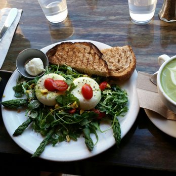 Yelp hasnt killed me yet, but maps had me cruising down an almost alleyway to a highly touted café in the rain had me reaching for my piece all the way until I saw the sanctuary of umbrellas and a patio, and a line and I knew I was home. My 2nd thought was the # of law enforcement officers in attendance. A dozen from 3 different jurisdictions had me extra on edge. JK. Cops love me. Im used to cops being on the go just in case they get a call and not really setting roots around their spread. Could be proximity to court house or lack of other good options in the area. Prices are a little high and service is good, but scatterbrained. When busy theyll take your order in line and the cashiers will confirm and cash you out. Some of the staff that brings your food is very helpful and others are straight up jerks, pushing and shoving to deliver food. Maybe cut out a few tables and open up the walk ways.The menu can be confusing depending on the time you go. It seems pretty big with lots of items, but once you realize the motif they are going for and the vision youll realize its all about 1 word "Rustic". Being an old renovated brick industrial building is cool, the art and the décor isnt overpowering, but fitting, tables and chairs were sturdy and comfortable, durable finishes fitting the bricks well. My scramble had a salad in it, and they called everything "heirloom", but basically just arugala with a light vinagrette. Frankly I was looking for the more commonly overused "local, organic" terms. Tasty sausage, fluffy eggs. Amazing artisanal bread when you slather butter on is really good. That nice thick crust and sitting window side watching the rain while I drank my red thai latte was a refreshing experience. Love how they offer soy, rice and almond milk, that alone puts them well above many coffee houses. Water is outside usually and self served. Tables do not come with silverware as again its a bit of a self serve. I think if they revamped their operational efficiency it would be a great place to come on a regular basis when in LA, but too many downstars. My want for condiments and service overall and a menu thats a little too specialized will keep this from getting a star on the walk of fame.