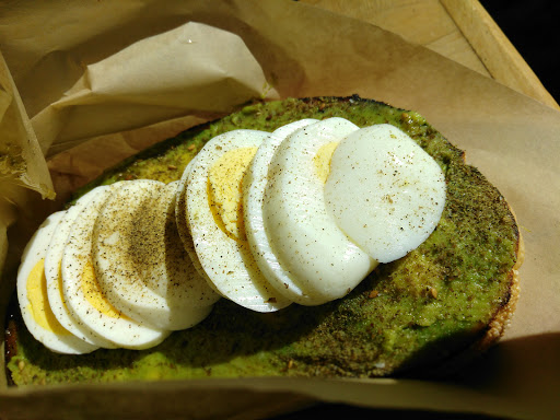 Blasting air conditioning on a hot summer afternoon! :( Was freezing inside, needed to go out and soak a little sun! :D But I loved their chamomile tea and everything bagel with tomato and cucumber, so giving it a 5* Highly recommended.