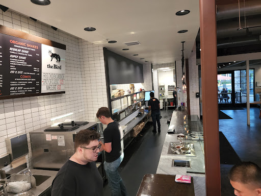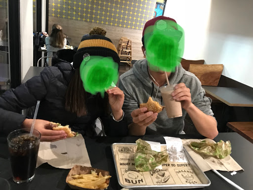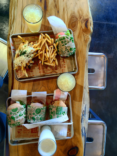The burgers are good and the price is fair. Its the CLEANLINESS that is slipping and has gone from lacking to gross. The outside patio: weird, wood plank tables have wide spaces that cant be cleaned and have growing deposits of nasty food bits, and the wood table tops are all permenantly covered in grease stains. The patio (concrete) is covered in gross stains as well. HIGHLY UNAPPETIZING. This is a side issue but shouldnt be: the landscaping--on a patio that could otherwise be one of the prettiest patios in LG-- looks like a 7-11 parking lot. I photographed all of this and will post photos on SDs FB page. Come on owners!!! Invest a few dollars and minutes into making your patio a) sanitary b) perhaps even...attractive and appealing? Youre blowing an opportunity in LG. Youre not paying cheap rent and you shouldnt let the place look like a truck stop. LG residents will happily pay your prices but not sit in a dirty, dumpy environment. Now...the Westfield mall location: Last week we were ordering and a staff member who was handing trays of food from kitchen to customers BLEW HIS NOSE IN HIS SHIRT SLEEVE and then wiped his nose with his hand. Brazenly...100 people could have seen him. In other words, this staff member had no idea that it was unacceptable and disgusting. I told the cashier and he told the MGR to make that staff member go wash his hands. Revolting. Please train staff in basic food service hygiene.
