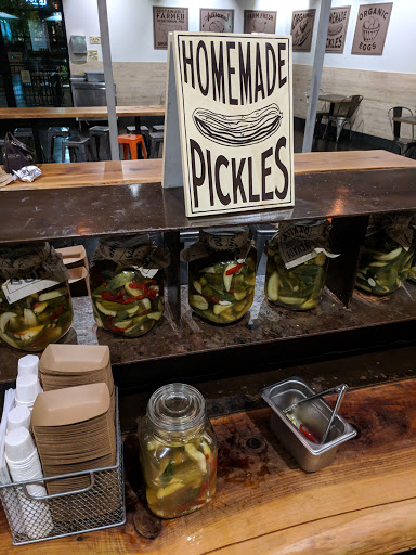 Was busy the first time I went. The line was moving pretty slow. Ordered the veggie burger with cheese fries and the extra sauce option. Paid a little over $10. Not bad for quality fast food I guess. Could be a little costly to others. Took about 8 to 10 minutes for my food to come out. They did forget to give me the extra sauces so I had to remind them. Tried to get some pickles to go with the food from the pickle bar but apparently they ran out and it was only 7pm. That was a little disappointing. The veggie burger was pretty solid and I was impressed. The cheese fries were decent. The extra sauce package was whatever. I was satisfied after eating. Very family friendly. Not a super cozy place but it was bright and modern. They do serve craft beer so thats a plus. The service was alright. Overall a decent first visit but I feel like I need to return and check out the other food options. Might up to 5