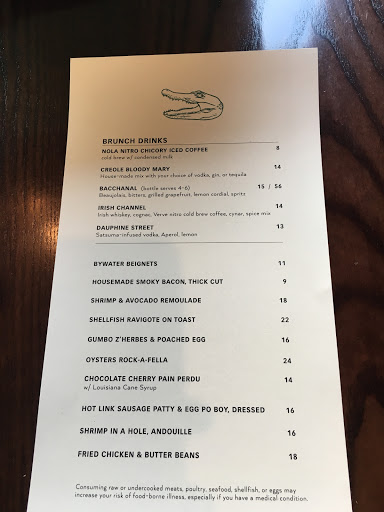 A high-end riff on the food of New Orleans; its to New Orleans what PF Changs is to Chinese. The food is quite good though a little bit sweeter than I would like it to be. Ive been there multiple times. Now for some color on the food. The Pulled Pork Poor Boy - its a quite good with slaw and a spicy tang to it (though sweeter than BBQ should be). The Blackened Romaine salad - slightly charred heads of Romaine with wedges of citrus and Green Goddess dressing. Though generous portions this is one of the lightest dishes Ive had there and is one of my favorites. The bacon is thick-sliced pork belly; its not fried until crispy but cooked until rich and delicious in a, you guessed it, way too sweet coating. Its a side, not a main dish, but Its so rich that it is best shared amongst all at the table. Rich Mans Red Beans and Rice is an excellent dish. It has meat in it - thats why its the rich mans version. But it is a simple, reasonable portion with a fried egg on top. Its another favorite. Im not sure this is the exact name, but Shrimp in the Hole is a dish with crispy fried bread with a hole in the middle in which they put shrimp. Its the dish I have liked the least; the bread is too crispy and doesnt absorb juices and flavors; it almost turns into powder as you chew it. If the bread had a French toast consistency I think it would be improved. No matter what have the Bywater Beignets at the end. They come 6 to a plate and are hot from the oil, slammed with powdered sugar, and fantastic. Oh, and they are not too sweet! Its a nice yeasty dough and, while not exactly the same as youd get in NOLA, they are just different, not inferior. And if you think theyre too filling, think again. Theyre really quite light. Have some chicory coffee with them. And the service is consistently good. Not overbearing, not too formal, but the waters stay full and its timely. Update 2017-06-01 - The last time we went they had changed thier beignet recipe. They are smaller, dont have the excellent yeasty flavor they used to, cinnamon has been added, and they are fried too crisply. I dont know why they changed a star item but I no longer look forward to going back. They used to be that good.