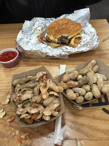 I would have given two stars but the food quality did not match the price cost - this was my first time here and I wanted to give it a chance; however, fries were over $5 and even though fries on top were nice and hot and seasoned ; the rest were small end pieces - could only eat half - the burger was disappointing where the best part was the tomato- the bun was damp and flat ( I posted pics of our meal) the wait time was short and free peanuts were a fun gimic and the staff was friendly and helpful - but I dont think we will be going back - this meal was forgettable and too expensive !